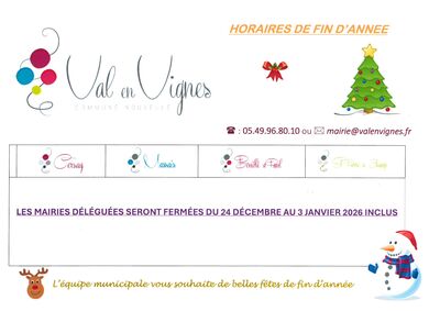 LES MAIRIES DÉLÉGUÉES DE CERSAY - MASSAIS- BOUILLÉ SAINT PAUL - SAINT PIERRE À CHAMP SERONT FERMÉES DU 24 DÉCEMBRE AU 3 JANVIER 2026 INCLUS